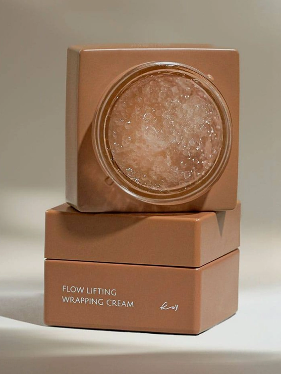 Koy Flow Lifting Wrapping Cream – ліфтинг-крем з концепції well-aging, створений для шкіри, якій не вистачає обʼєму, чіткості контурів та пружності. Капсули з Volufiline в кремовій текстурі при нанесенні ніби «обгортають» обличчя еластичною вуаллю, працюючи на візуальне заповнення та підтягання. Комплекс рослинних екстрактів для еластичності, гіалуронова кислота, трегалоза та бетаїн підтримують глибоке зволоження, а ніацинамід і аденозин відповідають за більш рівний тон та згладження дрібних зморшок. Крем дає ефект дорогої, щільнішої шкіри, не перевантажуючи її важкою текстурою.