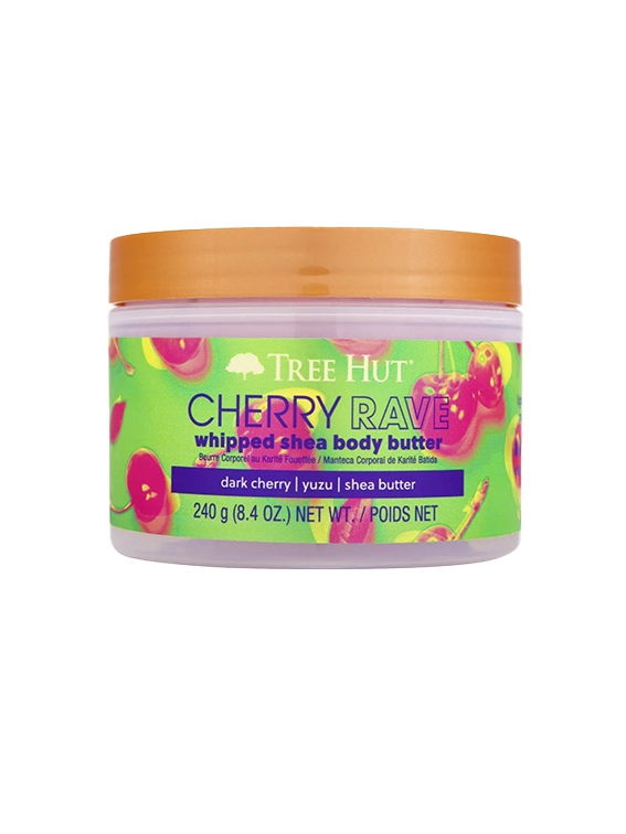 Поверніть вашій шкірі зволожений і сяючий вигляд завдяки легкій і повітряній формулі, без відчуття тяжкості традиційних масел для тіла. Tree Hut Body Butter Cherry Rave – ідеальний засіб для догляду за шкірою після ванни або як освіжаючий засіб. Зробить вашу шкіру м’якою, зволоженою і подарує неперевершений аромат